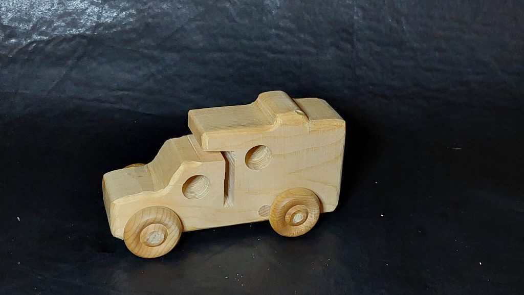 I typically don’t make larger sized trucks but had made a large Van that I had made for my son eons ago . Since I usually make two or more so I had one available at the Glebe and it sold. I also had made 2 large transport truck with a trailer and sold both.