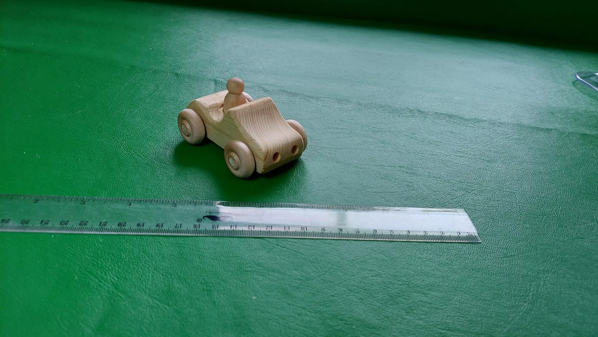 Small car with a peg person with a food safe beeswax finish.