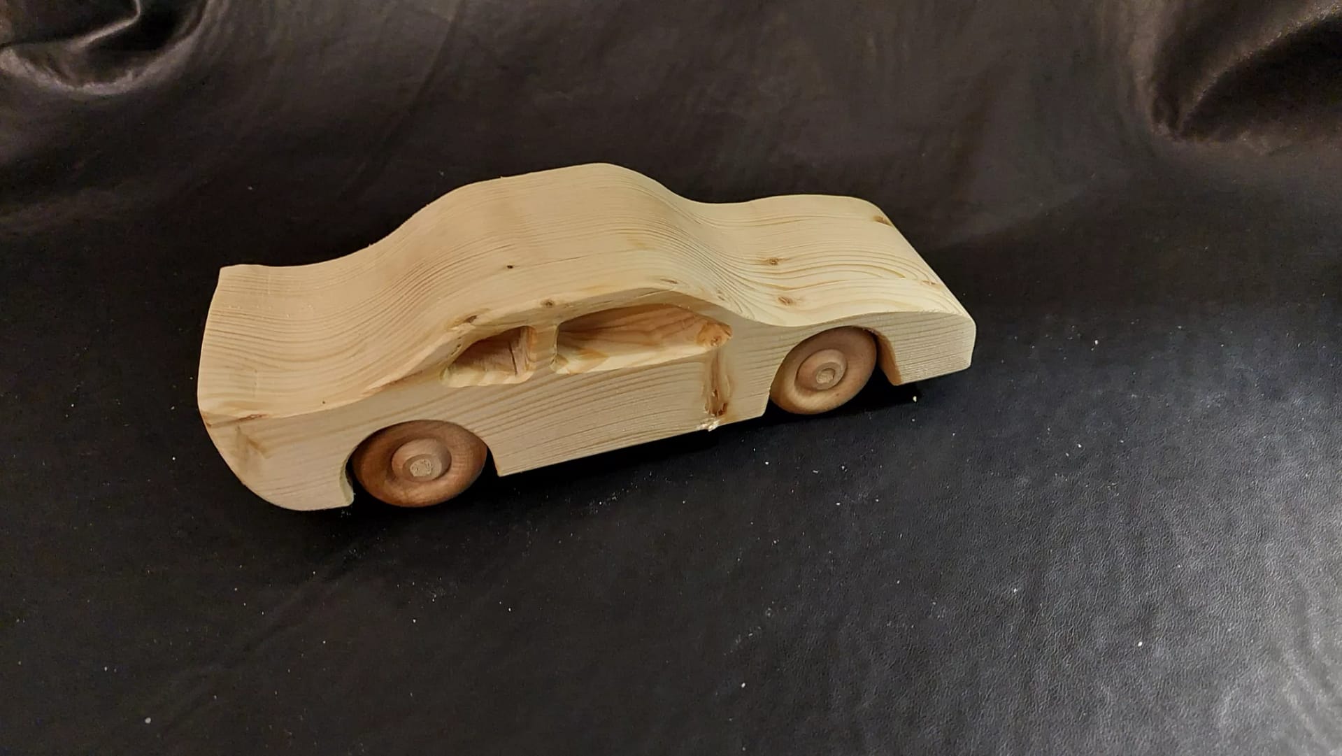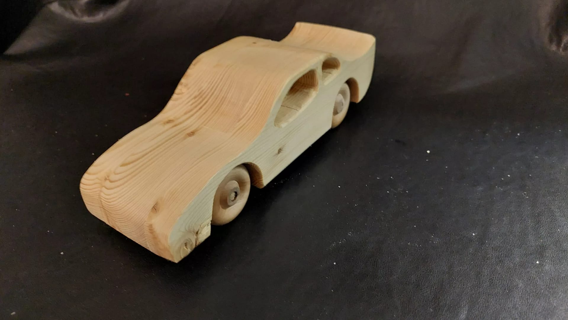 Large Stock Nissan race car. Measures 8 1/2 inches long, 3 inches wide and 3 inches high. Finished with a food safe beeswax coating.
