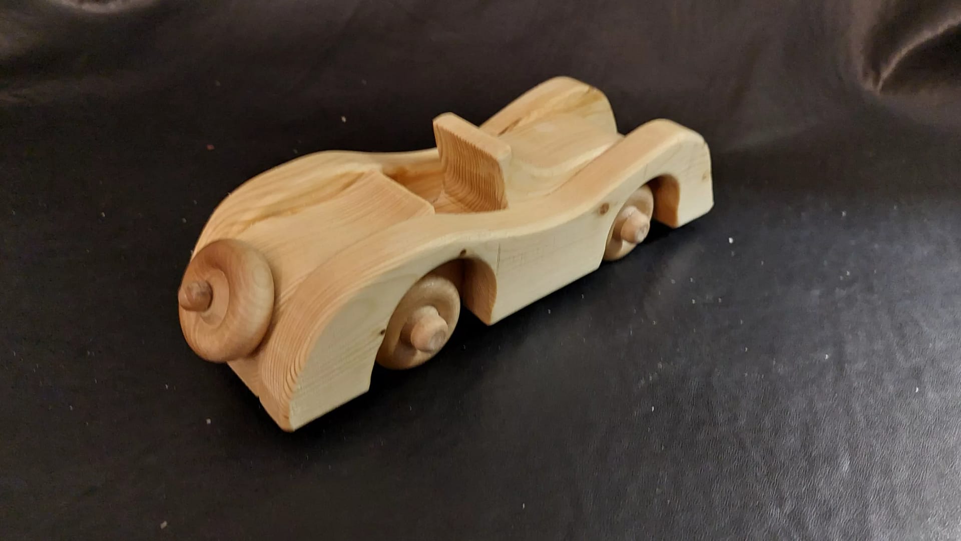 Large retro car convertible. Measures 8 1/2 inches long, 3 inches wide and 3 inches high. finished with a food safe beeswax coating.
