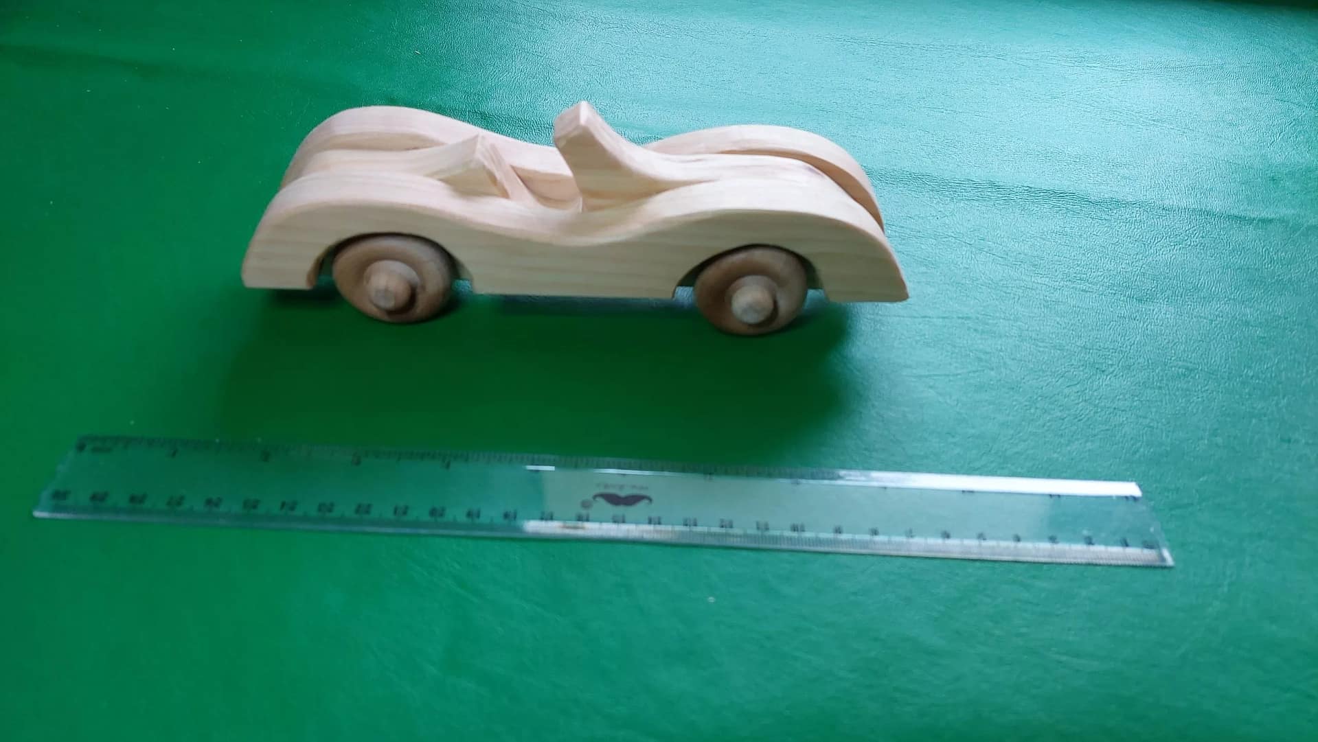 Small retro car similar to our larger retro car. This one measures 5 inches long, 2 inches wide and 2 inches high. Finished with a food safe beeswax coating.