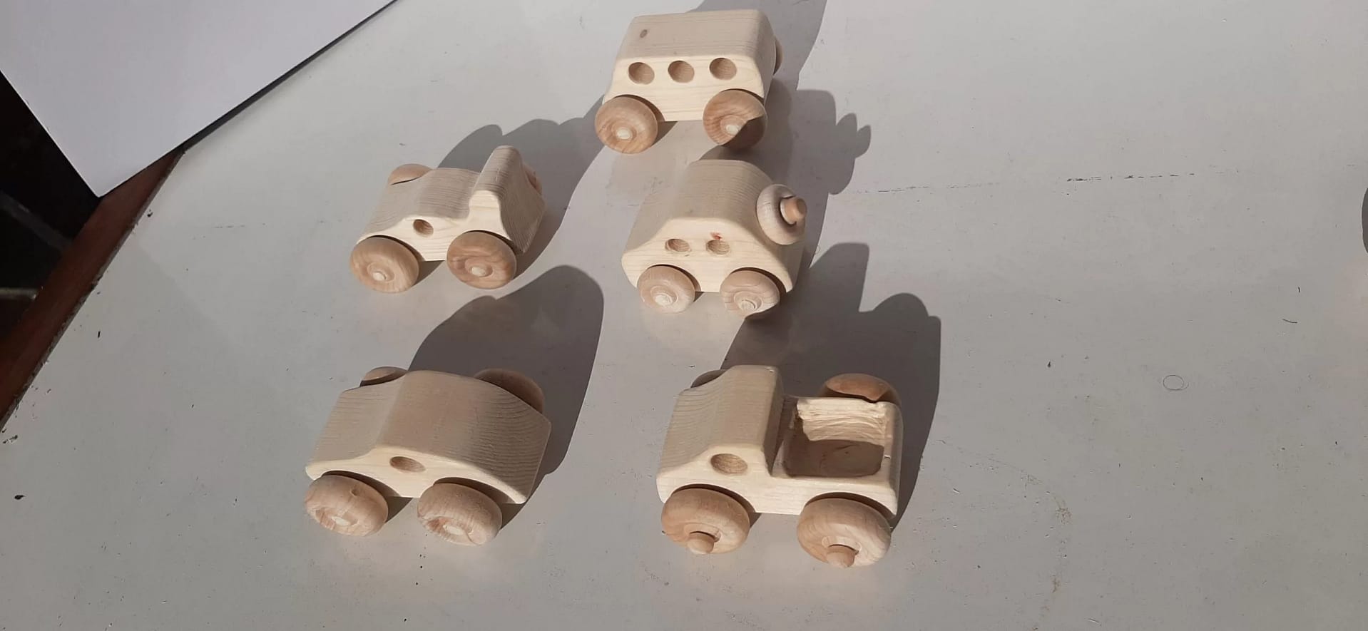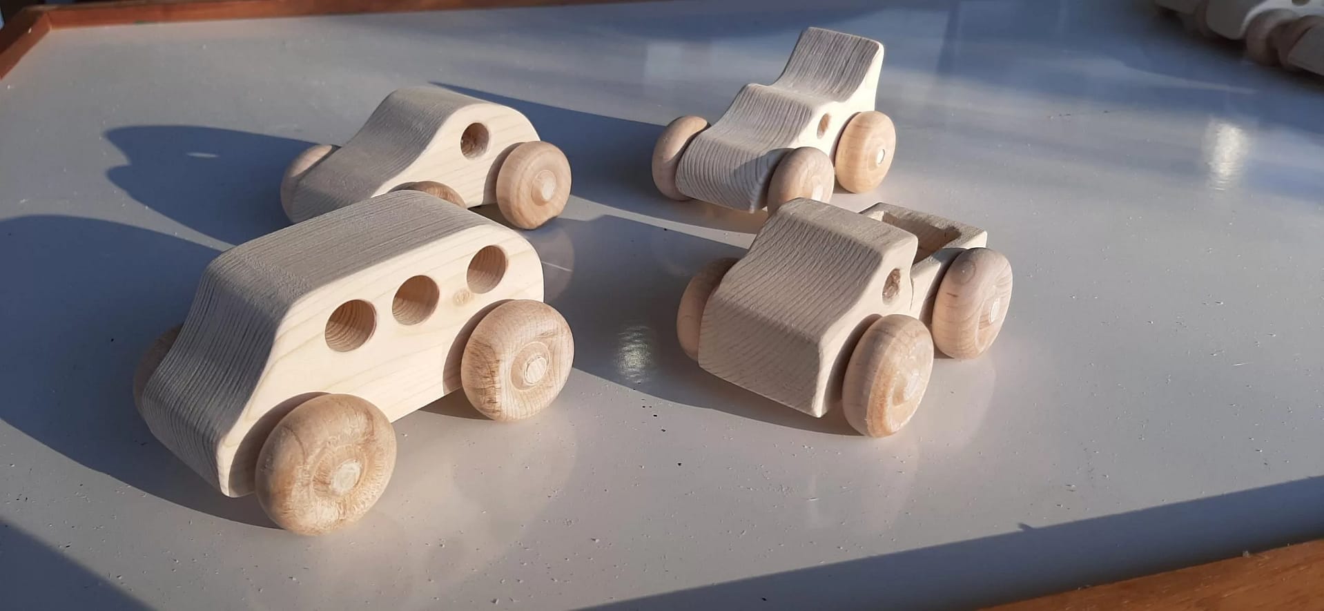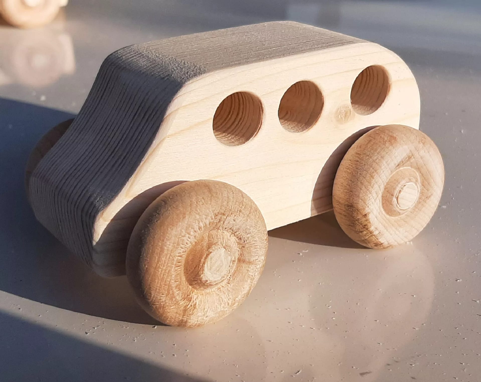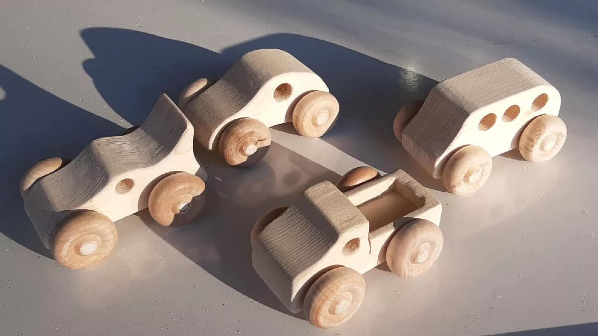 Handcrafted wooden toy SUV or mini van. Each SUV is 3 inches long, three inches wide and 2.5 inches tall. Comes in unfinished pine.