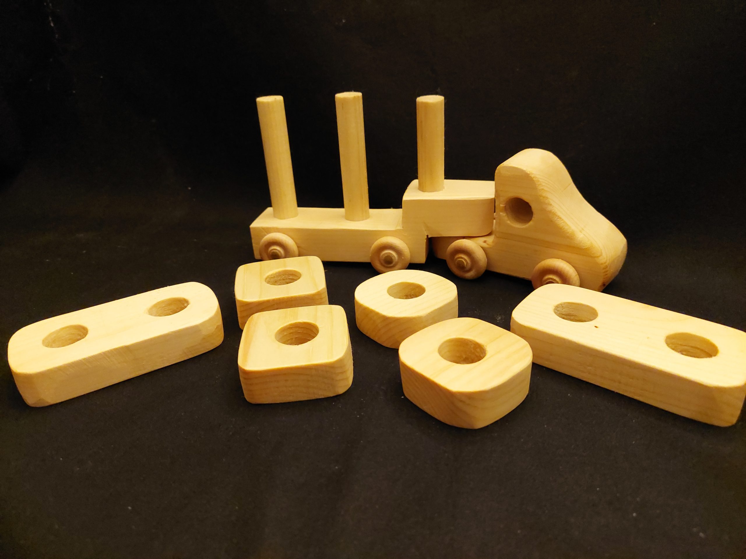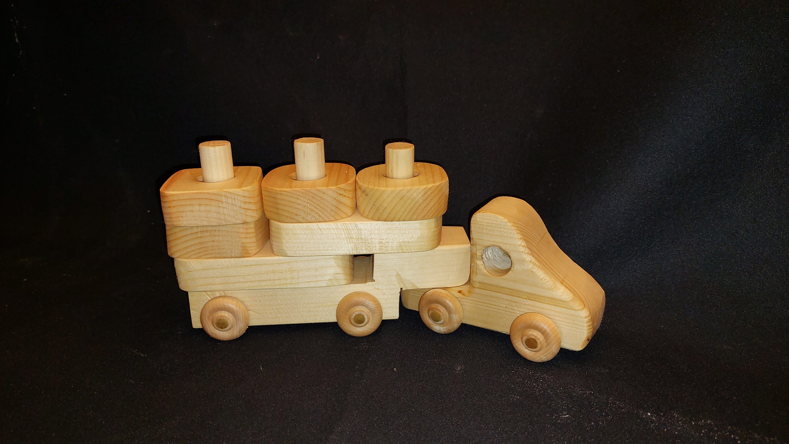This truck comes with a trailer with 6 different shapes that can be placed in different configurations. Helps with coordination and a fun toy .